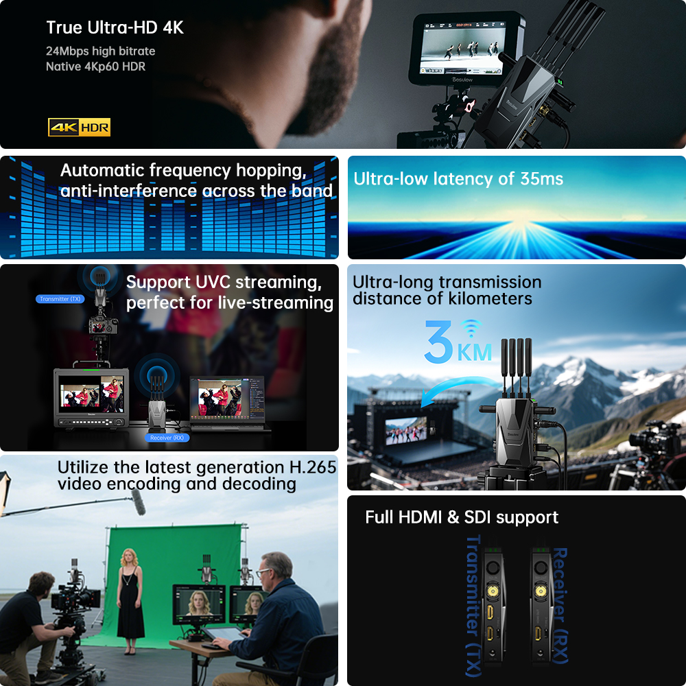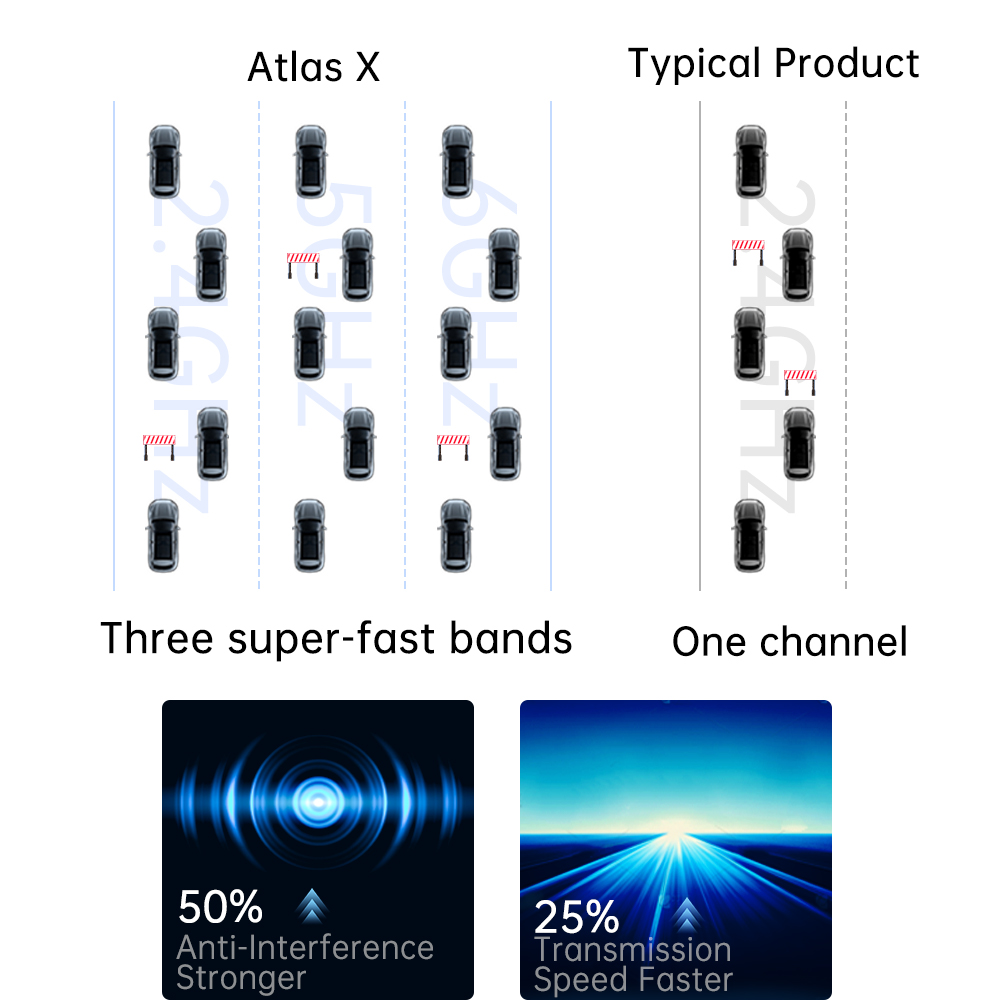 Stabil, nagy távolságú lefedettség, távolság akár több kilométer A háromsávos átvitelnek köszönhetően az Atlas X akár 3 km-es átviteli távolságot is elérhet nyílt, akadálymentes környezetben. Erős faláthatolási képességgel nagy léptékű mobil felvételeket is képes kezelni, így bármilyen komplex környezetben megfelel a forgatáson felmerülő monitorozási követelményeknek.