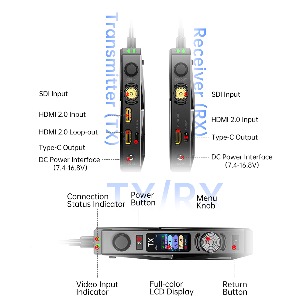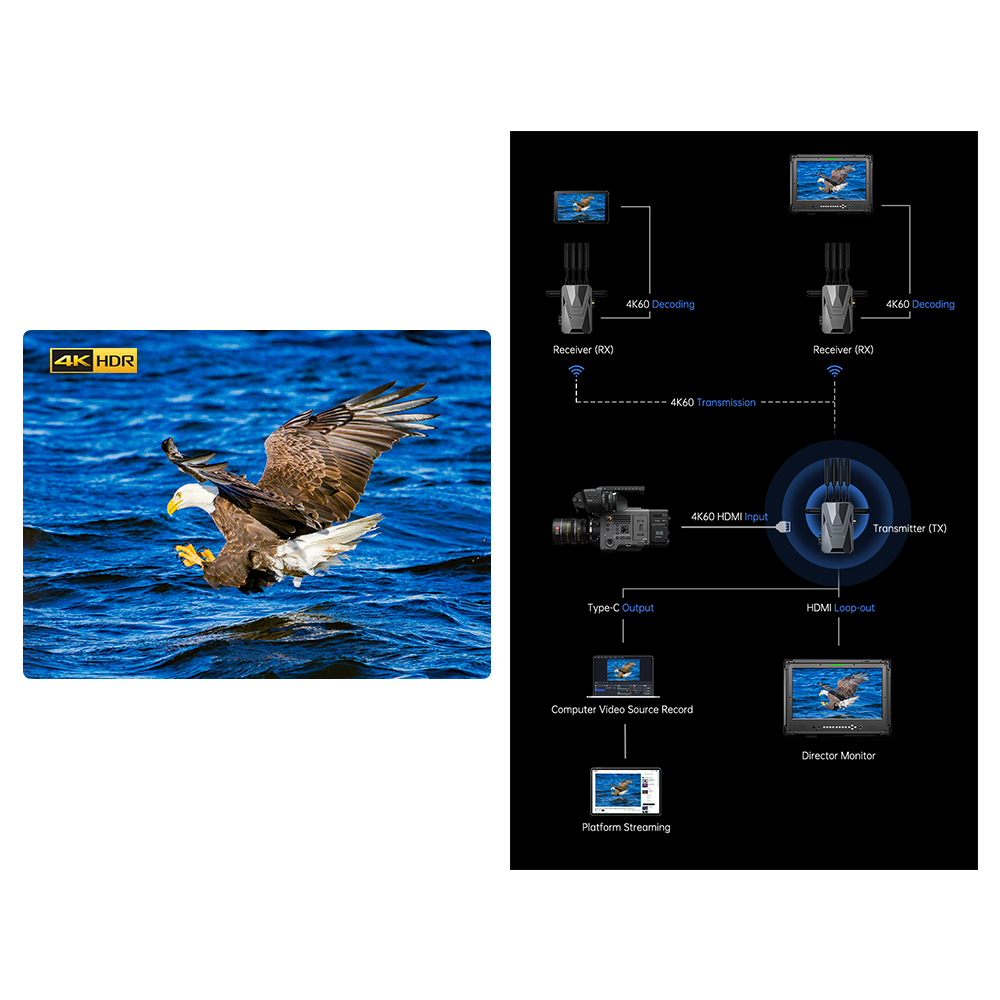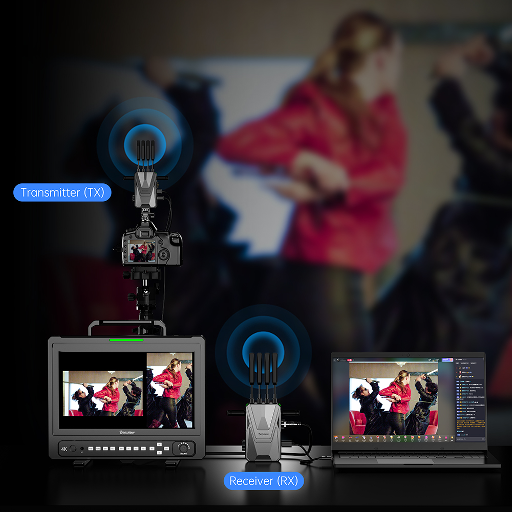 Professzionális vezeték nélküli videó adó-vevő Desview Atlas X 4K TX/RX a 4K képek késleltetés nélküli, hosszú távú, zökkenőmentes továbbításához. Ideális filmesek, televíziós műsorok és élő események számára. Katalógusszám: des-AtlasX4K-TX/RX. Robusztus kialakítás, egyszerű használat és megbízható teljesítmény. Javítsd produkciódat ezzel a csúcskategóriás vezeték nélküli megoldással.