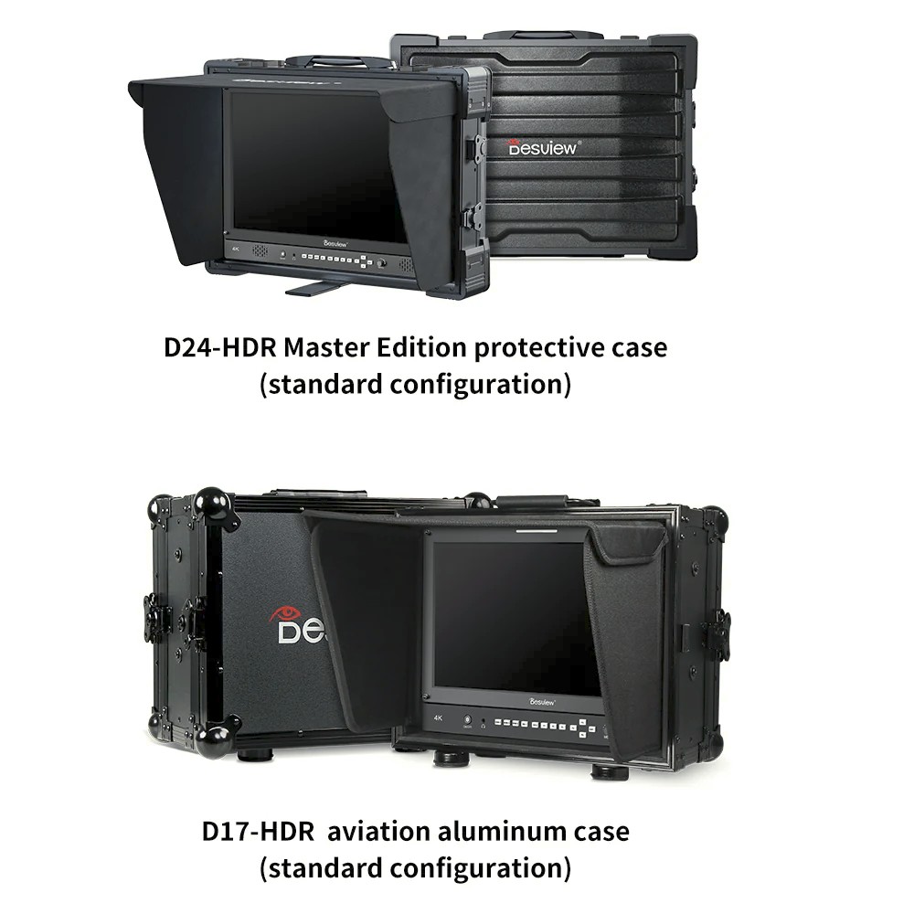 A Desview D24-HDR egy professzionális, 24 hüvelykes 4K UHD sugárzási monitor, amely HDR támogatással, többképernyős megfigyeléssel, HDMI és SDI csatlakozással, teljes hullámforma-eszközökkel és tally jelzőkkel rendelkezik, és amelyet igényes sugárzási, stúdió- és élő produkciós környezetekhez terveztek.
