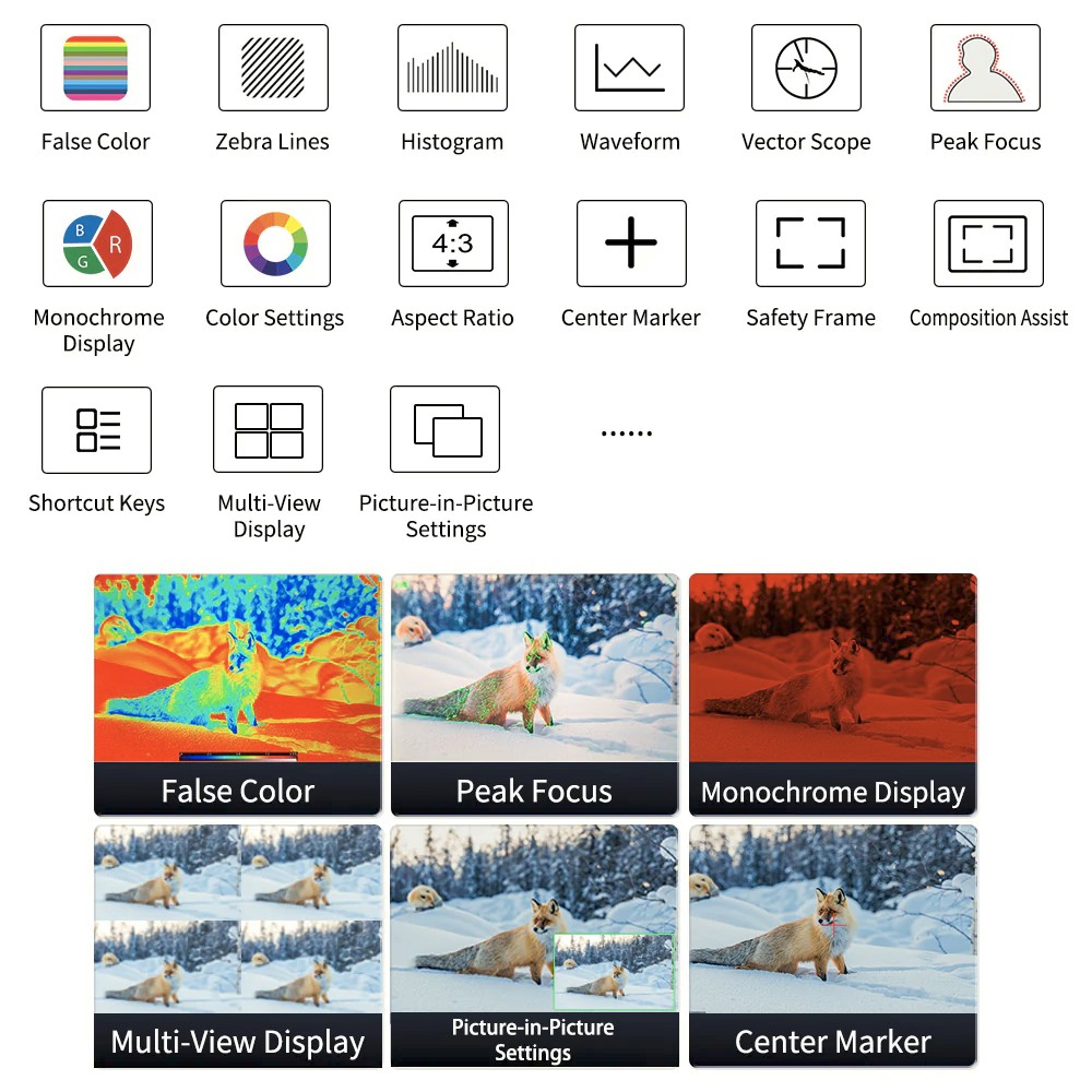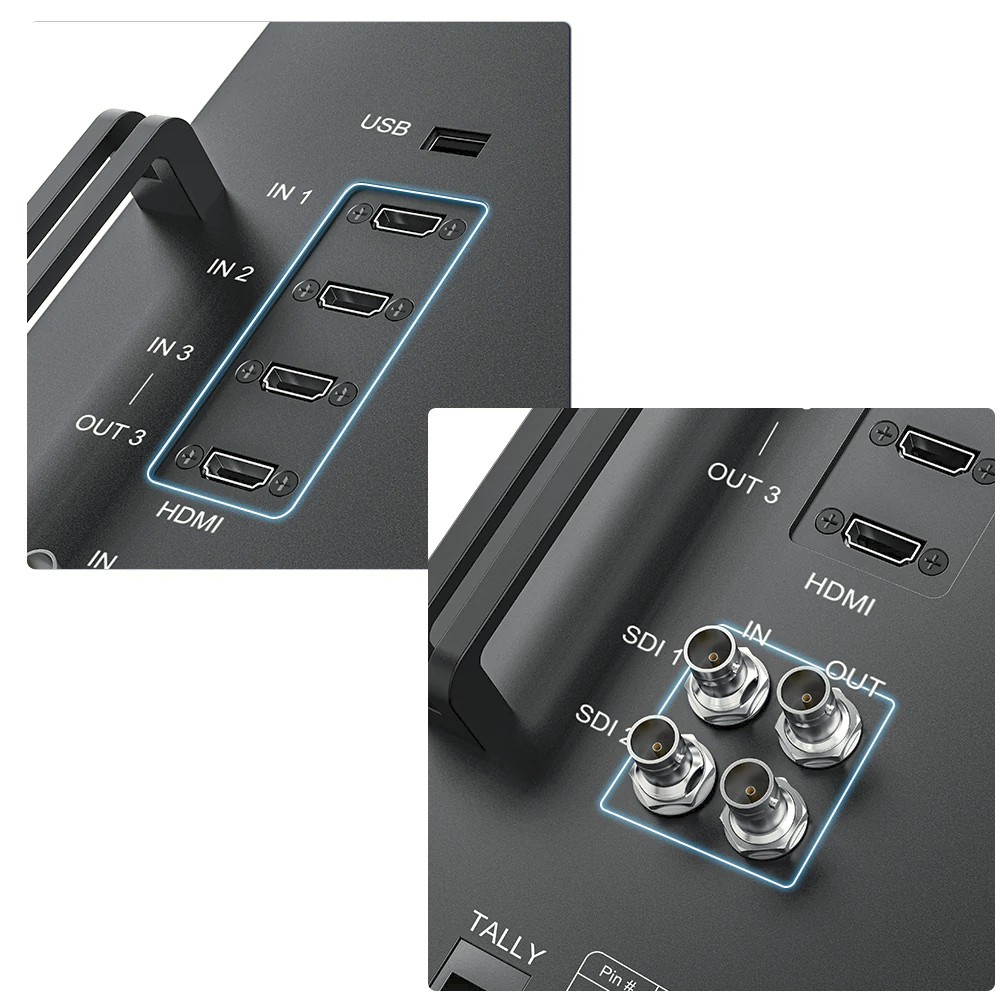 A fejlett produkciós felállásokhoz tervezett D24-HDR támogatja a többképernyős monitorozást vízszintes és függőleges kijelző tájolással, így különböző felvételi helyzetekhez alkalmazkodik. Három HDMI 2.0 bemenettel és egy 4K@60Hz-et támogató HDMI kimenettel rendelkezik, valamint professzionális SDI bemenettel és kimenettel a broadcast minőségű jelátvitelhez. A beépített teljes hullámforma-monitorozás, hisztogram és vektorszkóp eszközök lehetővé teszik az expozíció, a szín és a képminőség pontos szabályozását. Első tally light rendszerrel és többféle tápellátási lehetőséggel – beleértve a V-mount akkumulátort, az AC tápellátást és az XLR bemenetet – a Desview D24-HDR robusztus megoldás rendezők, mérnökök és gyártási csapatok számára.