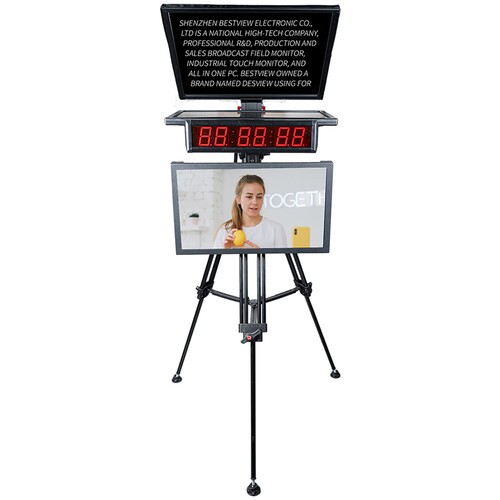 A Desview DT24-M kettős képernyős teleprompter egy professzionális szintű súgógép , amelyet műsorszolgáltató stúdiók, élő produkciók és helyszíni felvételek számára terveztek. Két nagy fényerejű, 24 hüvelykes Full HD monitorral rendelkezik, HDMI és 3G-SDI támogatással, edzett sugárszétválasztó üveggel és sokoldalú kameratartóval, így biztosítja a szöveg zökkenőmentes előadását, miközben mind beltéri, mind kültéri környezetben megőrzi a természetes szemkontaktust a közönséggel.