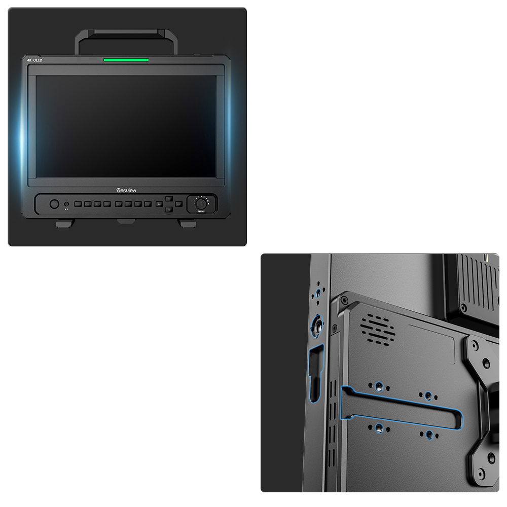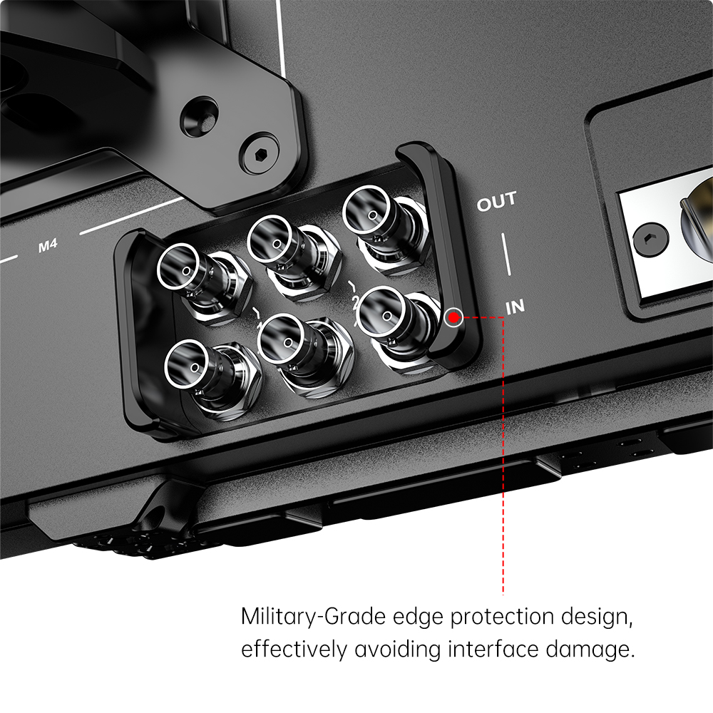 Professzionális minőségű SDI interfész Háromcsatornás SDI bemenetet/kimenetet biztosít, rugalmasságot és sokszínűséget kínálva alkotásához, könnyen csatlakoztatható több eszközhöz, és korlátlan alkotási lehetőségeket kínál. Katonai minőségű élvédő kialakítás, amely hatékonyan megakadályozza az interfész károsodását.
