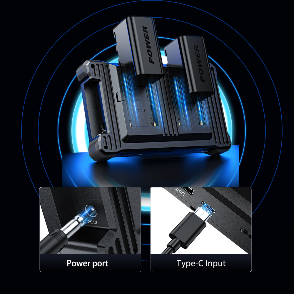 DC BEMENET 7~30V / DC KIMENET 8V USB típus-C NP-F sorozatú akkumulátor foglalat*2 |