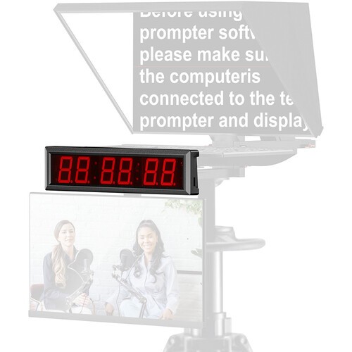 A Desview Timer elengedhetetlen kiegészítő a teleprompter berendezésekhez, amely a szövegek olvasása közben világos, pontos időzítés-kijelzést biztosít a műsorvezetőknek. A DT20, DT22 és DT24 teleprompterekhez tervezve, a műsorvezető monitorja fölé rögzíthető, így optimális láthatóságot biztosít. A nagy, 6 számjegyű piros LED-kijelző biztosítja, hogy a kamerák előtt álló előadók könnyedén követni tudják az időt prezentációk, élő közvetítések és felvételek során, anélkül, hogy elterelné a figyelmüket. Megbízható kialakítása zökkenőmentesen illeszkedik a teleprompter rendszerhez, segítve a produkciók során a tempó és a professzionalizmus fenntartását.