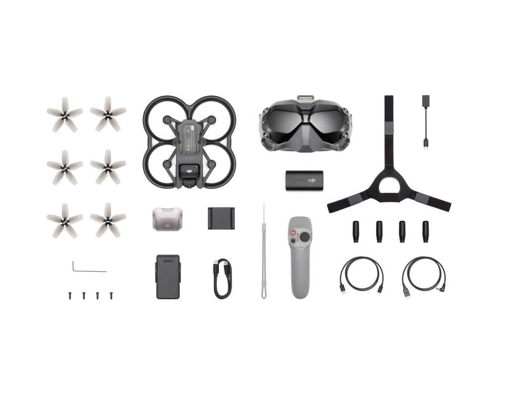 Obsah balení 1x DJI Avata 1x DJI Avata Intelligent Flight Battery 3x DJI Avata Propellers (Pair) 1x DJI Avata Power Adapter 1x DJI Avata Gimbal Protector 1x Type-C to Type-C PD Cable 1x Screwdriver 4x Screws (M2×7) 1x OTG Cable 1x DJI Motion Controller 1x Lanyard 1x DJI FPV Goggles V2 1x DJI FPV Goggles Battery 1x DJI FPV Goggles Headband 1x DJI FPV Goggles Power Cable (USB-C) 1x DJI FPV Goggles Dual-Band Antenna 1x DJI FPV Goggles USB-C Cable