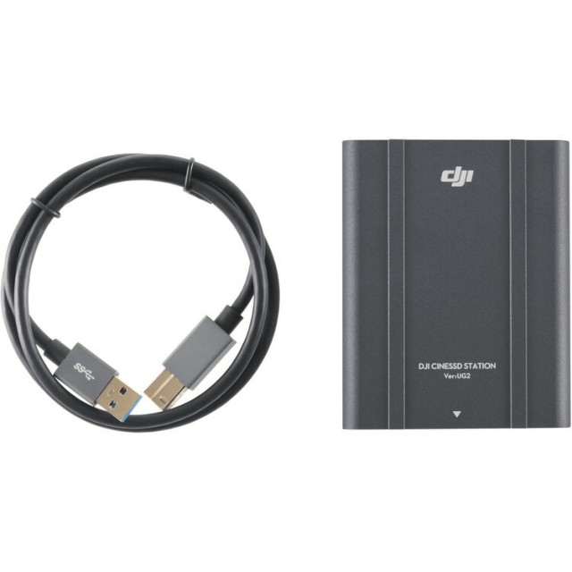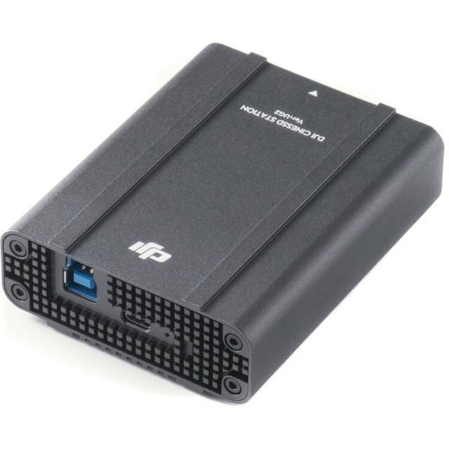 A DJI Inspire 2 CINESSD Station (UG2) gyors és kényelmes USB 3.0 csatlakozást biztosít a nagy videofájlok CINESSD meghajtókról közvetlenül a számítógépre történő átviteléhez, többféle meghajtókapacitást támogatva a professzionális munkafolyamatok hatékonysága érdekében.