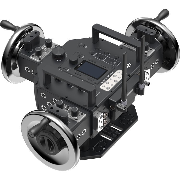 A sokoldalúság érdekében a középső kerékmodul a kezelő kényelme érdekében közelebb tolható a bal vagy jobb oldali modulokhoz, és az összes kerék levehető, hogy szűk helyeken is használható legyen kábeles csatlakozással. A 2,4 és 5,8 GHz-es kettős frekvenciájú vezeték nélküli átvitel még nehéz körülmények között is megbízható jelet biztosít. Az önmelegítő akkumulátorok akár 18 órányi működést biztosítanak, így a készülék -20 °C-os hőmérsékleten is használható. Beépített kijelzőjével, Mitchell-tartójával és többféle tartozékcsavarjával a Master Wheels 3-Axis átfogó megoldást kínál a precíz gimbal vezérlést igénylő high-end produkciókhoz.