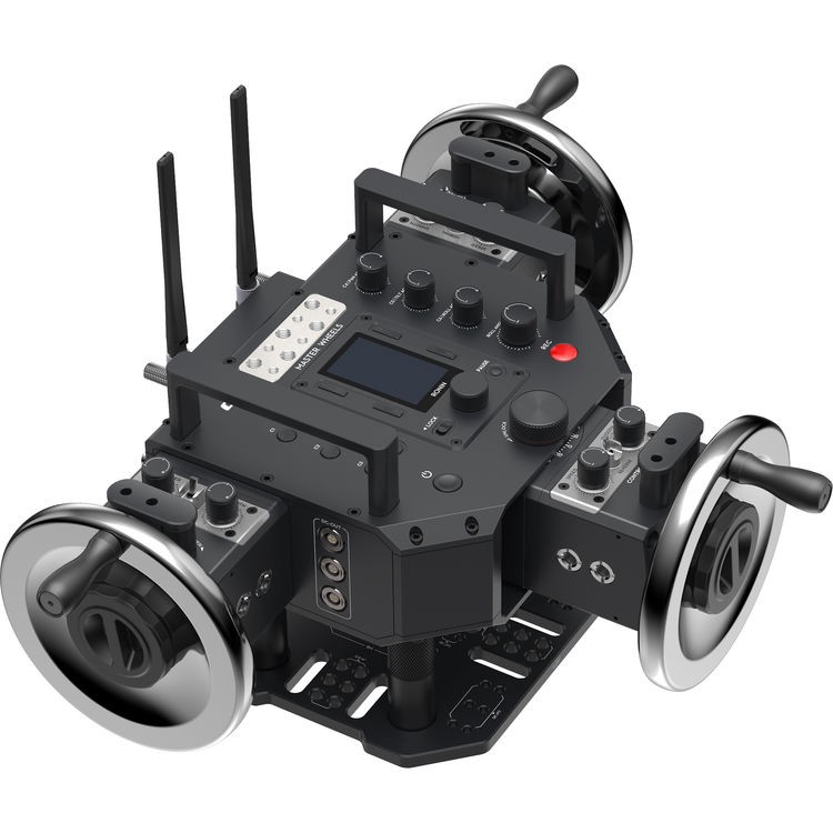A Master Wheels rendszer támogatja a vezeték nélküli és a vezetékes működést is, akár 3 km-es vezeték nélküli hatótávolsággal és 30 m-es vezetékes működéssel, opcionális kábellel, lenyűgözően alacsony, 10 ms-os késleltetéssel. A mozgások elmenthetők és megismételhetők, így létrehozható egy precíz, megismételhető kameramozgásokból álló könyvtár. Minden kerék háromállású kapcsolóval rendelkezik az irányításhoz, valamint sebesség-, simaság- és csillapítás-beállítási tárcsákkal.