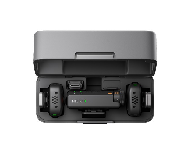 A kompakt DJI Mic Mini innovatív kialakítással rendelkezik a könnyű tárolás érdekében. Az újratölthető tokban rendezetten tárolhatsz két adót, egy vevőt, mobiltelefon-adaptereket és szélvédőket. Az adókon lévő szélvédőket nem kell eltávolítani a tokban való tároláskor. Az egész készlet kényelmesen használható és tárolható.