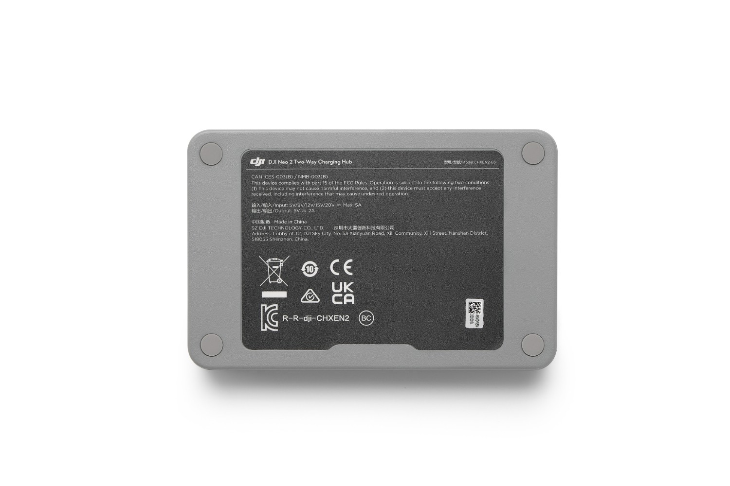 A DJI Neo 2 kétirányú töltőállomás lehetővé teszi akár három akkumulátor egymás utáni töltését, vagy powerbankként más eszközök töltésére is használható.
