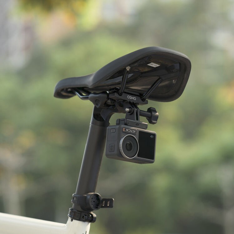 Rögzítsen dinamikus felvételeket a DJI Osmo Action Bike Seat Rail Mount segítségével, amelynek célja, hogy biztonságosan rögzítse Osmo Action kameráját a kerékpár ülésének aljára.