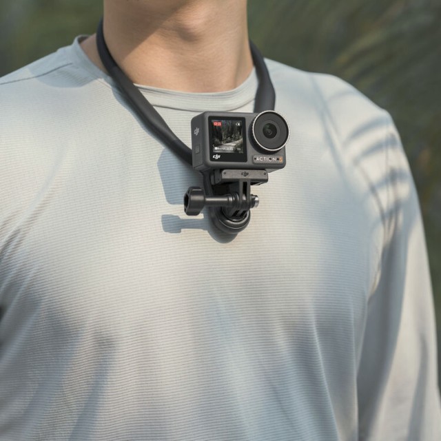 Kényelmes, rugalmas és biztonságos rögzítést biztosító Osmo Action nyakpánttal készítsen magával ragadó, kézmentes POV felvételeket az Osmo Action sorozatú kamerákkal.