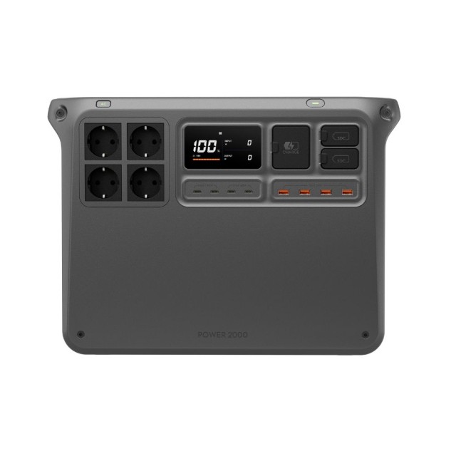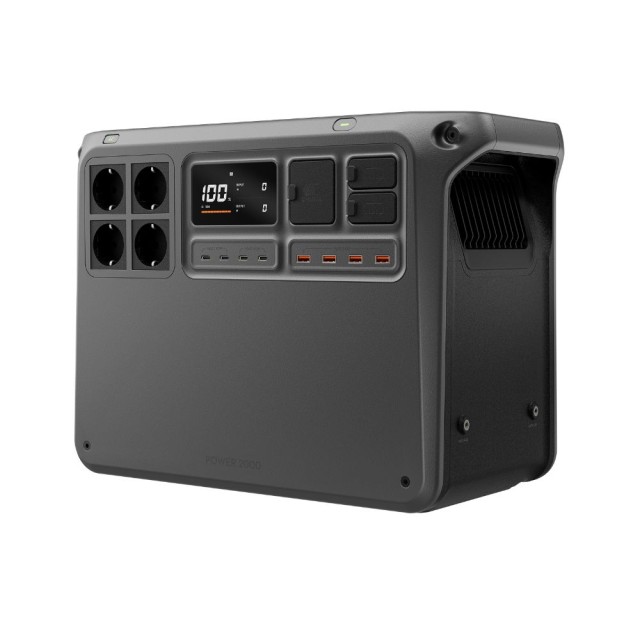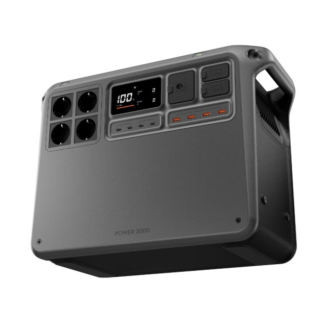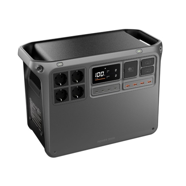 A DJI Power 2000 2048 Wh kapacitást kínál egy kis "kézipoggyász" formátumban, amely könnyen elfér egy autó csomagtartójában. A kezelőszervek, portok és kijelzők a készülék előlapján találhatók a könnyű használat és a helytakarékosság érdekében. Akár tíz darab 2048 Wh-s bővítő akkumulátorhoz is csatlakoztatható, így a teljes kapacitás elérheti a 22528 Wh-t. Ideális megoldás a mindennapi tartalék és vészhelyzeti háztartási áramellátáshoz.