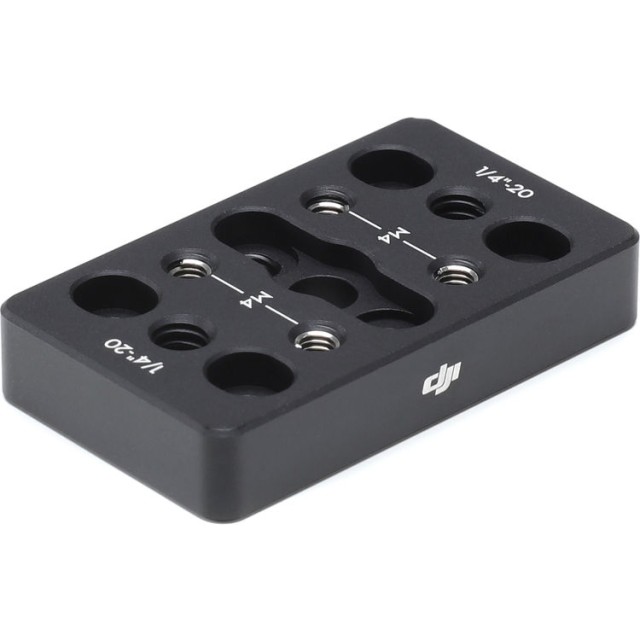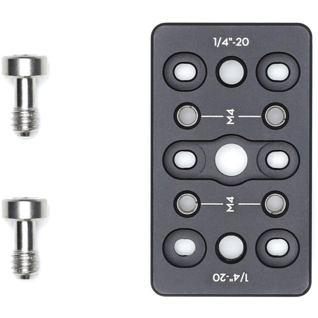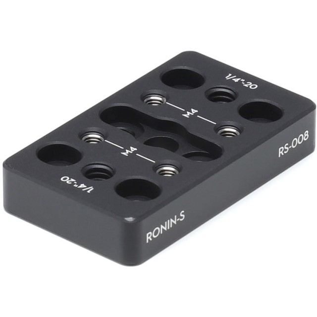 A DJI Ronin-S Cheese Plate egy sokoldalú tartozék rögzítőlemez, amely a Ronin-S gimbal oldalára rögzíthető, és M4 vagy 1/4"-20 menetes furatok segítségével lehetővé teszi a tartozékok függőleges vagy vízszintes elhelyezését.