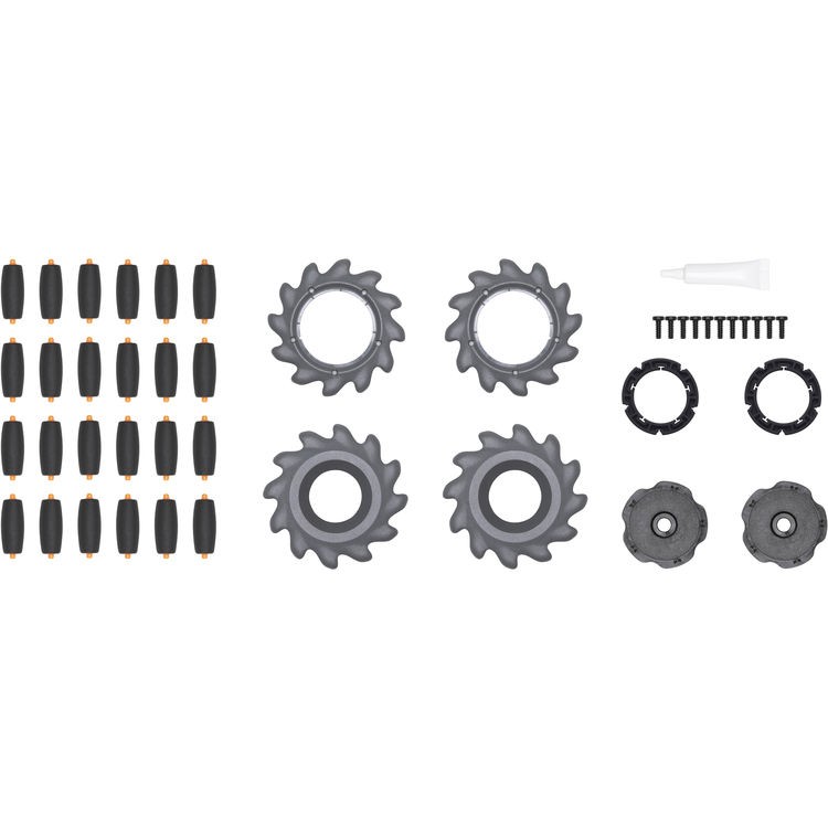 A DJI RoboMaster S1 PART7 Mecanum kerekek készlet minden szükséges alkatrészt tartalmaz a RoboMaster S1 tank két Mecanum kerékének összeszereléséhez vagy javításához. Ezek a kerekek az S1 egyedülálló mobilitási rendszerének központi elemei, amelyek lehetővé teszik a tank előre, hátra, oldalra, átlósan történő mozgását, valamint a helyben történő sima forgást kivételes pontossággal.