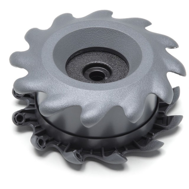 Minden kerék 12 görgővel van felszerelve, amelyek kétlépcsős fröccsöntési eljárással készülnek, amely kemény és puha gumianyagokat kombinál. A kemény gumigörgők nagy szilárdságú, ütésálló, önkenő POM-ból készülnek, míg a puha gumigörgők kopásálló TPU-ból. Ez a kettős anyagú kialakítás biztosítja a tartósság, a tapadás és a sima mozgás optimális egyensúlyát különböző felületeken.