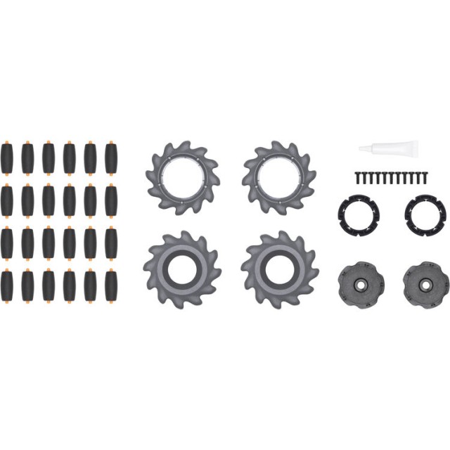 A RoboMaster S1 PART7 Mecanum kerekek (pár) hivatalos DJI pótalkatrészek és frissítési alkatrészek, amelyek két Mecanum kerék összeállítására vagy javítására szolgálnak , lehetővé téve a RoboMaster S1 pontos, minden irányú mozgását és fokozott tartósságát.