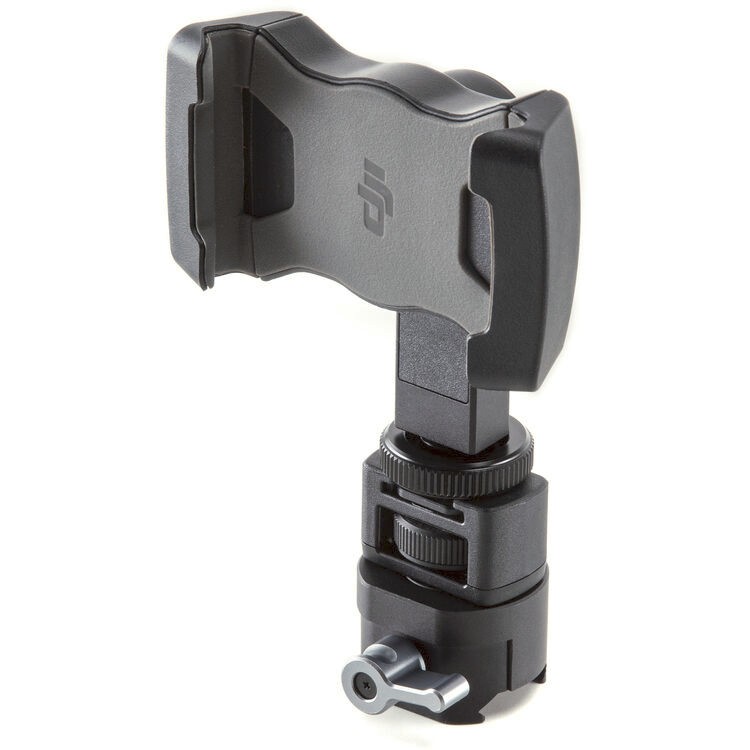 A DJI Ronin telefon tartó segítségével biztonságosan rögzítheti okostelefonját a kompatibilis DJI gimbalokhoz, lehetővé téve a képfigyelést és az ActiveTrack/Force Mobile funkciókat, miközben rugalmas rögzítési lehetőségeket biztosít.