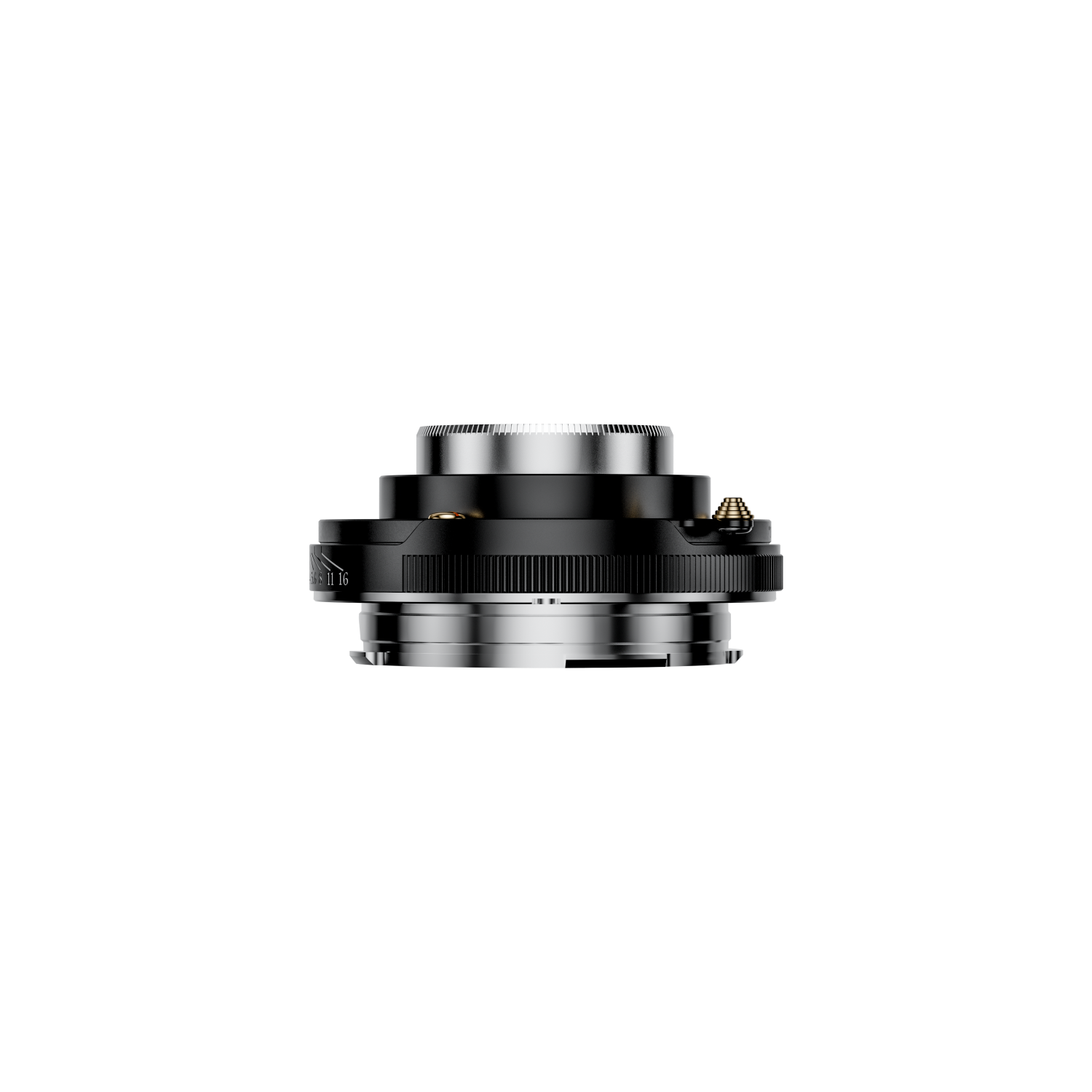 A Thypoch Eureka 28 mm f/2,8 ASPH. Leica M-Mount objektív félig fényes fekete kivitelben ötvözi az 1950-es évek vintage pancake objektívjeinek eleganciáját a modern optikai technológiával. Kompakt sárgaréz testével, fényes f/2,8-as rekesszel és fejlett aszférikus/HRI optikai kialakításával ez az objektív éles, kifejező képeket biztosít, amelyek ideálisak utcai, utazási, beltéri, portré és mindennapi történetmeséléshez Leica M fényképezőgépeken.