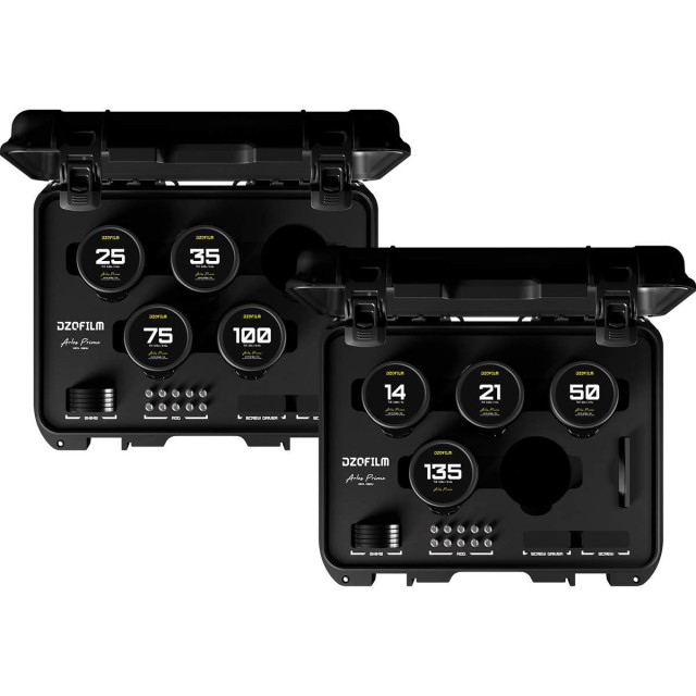 Készüljön fel, hogy kreativitását a következő szintre emelje a DZOFilm Arles, a fix gyújtótávolságú, akár T/1,4-es nagy rekesznyílású és kivételes képminőségű professzionális filmobjektívek sorozatával! Nyolc objektívből álló készlet a DZOFilm Arles sorozatból, 14, 21, 25, 35, 50, 75, 100, 135 mm-es gyújtótávolsággal.