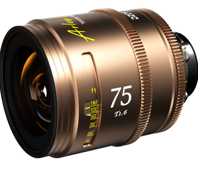 A DZOFILM Arles Lustre 75 mm T1.6 teljes képkocka / VistaVision Prime Cine objektív (PL-csatlakozó, metrikus) jellegzetes meleg borostyánszínű halo effektussal és retro fémes kialakítással biztosít egyedi filmes karaktert. Gyors T1.6–T22 rekeszérték-tartománnyal, cine-standard 0,8 MOD fogaskerekes meghajtással és cserélhető ARRI PL és Canon EF bajonettekkel rendelkező, nagy formátumú fix fókuszú objektív kifejező vintage esztétikát ötvöz modern professzionális megbízhatósággal filmek, reklámok és kézi felvételek készítéséhez.