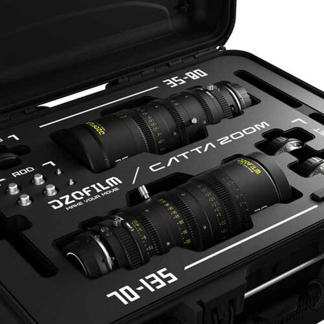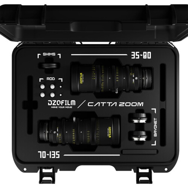 Adjon hozzá két mozi zoom objektívet a dokumentumfilmes, broadcast vagy online produkciós készletéhez ezzel a Catta 35-80 és 70-135mm T2.9 E-Mount Cine Zoom 2 objektíves csomaggal a DZOFilmtől. A csomag tartalmazza a Catta 35-80 mm-es moziobjektívet, a Catta 70-135 mm-es moziobjektívet és egy keményhéjú tokot. Mindkét objektív E-bajonettel rendelkezik, amely felcserélhető opcionális RF, L, X vagy Z foglalattal, és mindegyik objektív stílusos fehér színben kapható.