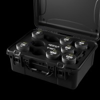 A csomagban egy tartós, kemény héjú tok található, precíziós lézerrel vágott habbal, amely biztonságos tárolást és szállítást biztosít az objektívek számára.