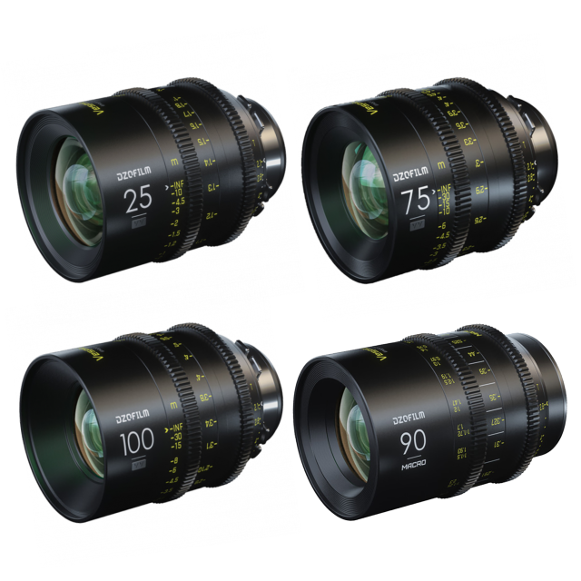 DZOFILM Vespid 4 objektív készlet (25mm, 75mm, 100mm T2.1, Makró 90mm T2.8) - Imperial (Canon EF vagy PL foglalat).