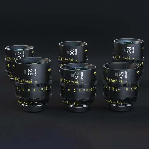 Ez a DZOFilm VESPID 6 objektíves A készlet a független filmektől a stúdiófilmekig terjedő produkciókhoz használható. A mellékelt 25, 35, 50, 75, 100 és 125 mm-es PL foglalatú és a mellékelt EF foglalatú objektívek full-frame érzékelőket fednek le és 46,5 mm-es képkört vetítenek ki, mégis kicsik és könnyűek, így kiváló választás kézi, gimbal és drónos munkához.