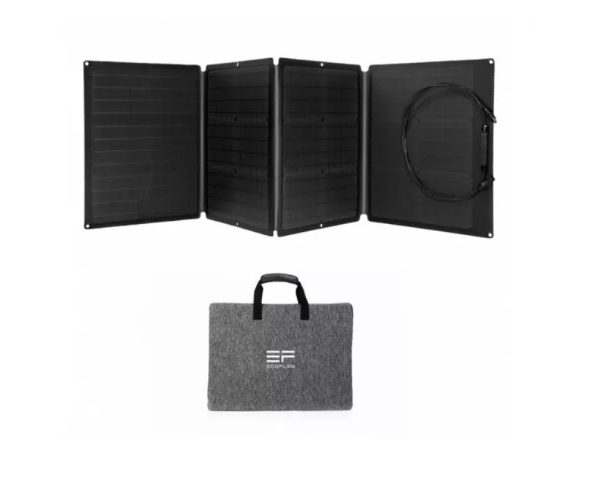 Az EcoFlow 110 W-os összecsukható napelem egy nagy hatékonyságú, hordozható áramellátási megoldás, amely monokristályos szilícium cellákkal, vízálló szerkezettel és rugalmas szögbeállítási lehetőséggel rendelkezik – ideális az EcoFlow áramellátó állomások és más kompatibilis generátorok töltésére olyan helyeken, ahol nincs hálózati áramellátás.
