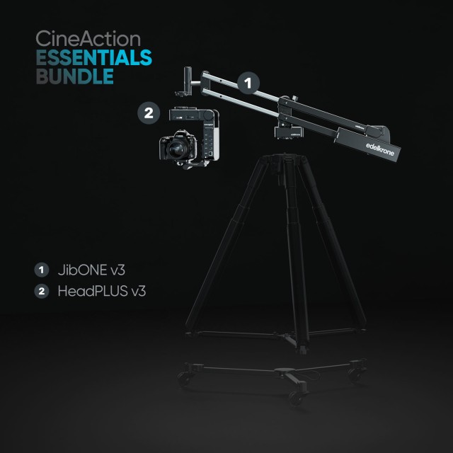 Edelkrone CineAction Bundle - Essentials: HeadPLUS v3 és JibONE v3 a pontos kameramozgásokhoz és a dinamikus filmkészítéshez.