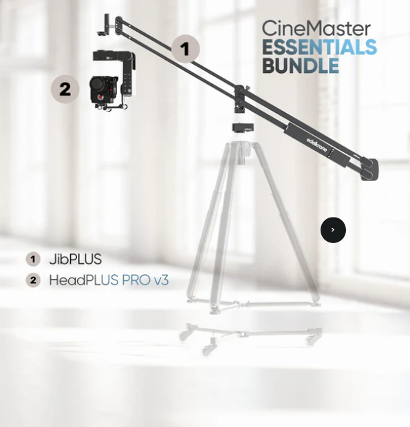 Edelkrone CineMaster Essentials csomag: A JibPLUS és a HeadPLUS PRO v3 alapvető filmes megoldás, amely tökéletes a zökkenőmentes, pontos kameramozgatást és -vezérlést kereső professzionális filmesek számára.