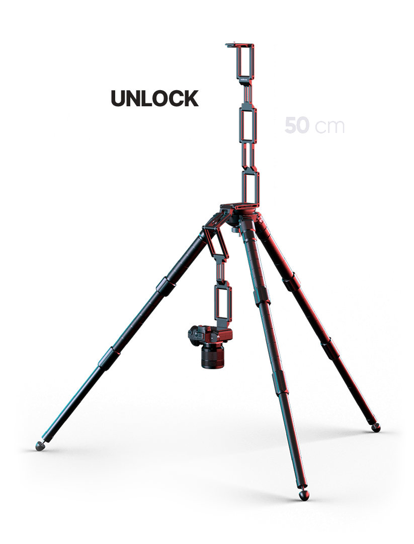 Ne hagyja, hogy a hagyományos állványfejek korlátozzák kreativitását. Könnyedén, egy pillanat alatt változtathatja a kamera magasságát anélkül, hogy az állványlábakkal kellene bajlódnia, és olyan madártávlatokat nyithat meg, amelyeket másképp nem tudna elérni.