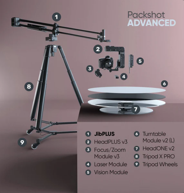 Az Edelkrone PackShot Bundle - JibPLUS Advanced egy motorizált, többtengelyes kameraállványrendszer, amelyet a professzionális termékvideózás és filmkészítés zökkenőmentes, automatizált kameramozgásaihoz terveztek. A pontos követés, a vezeték nélküli vezérlés és a fejlett mozgásautomatizálás révén ez a rendszer növeli a hatékonyságot és a kreativitást a dinamikus felvételeknél.