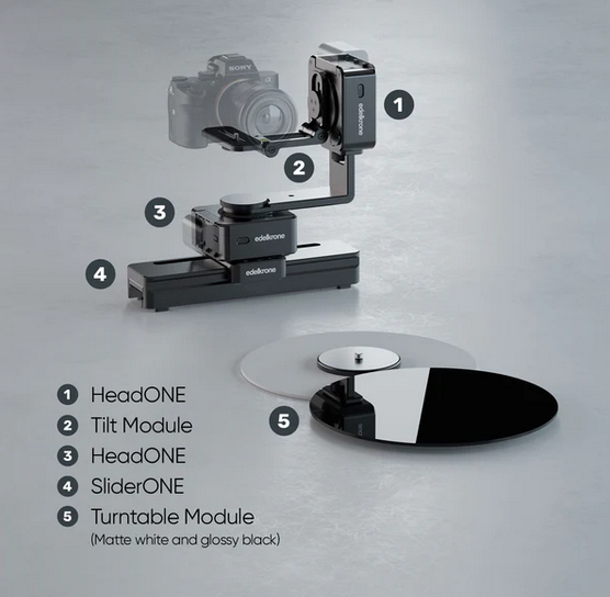 Edelkrone SlideAction csomag - Teljes: Fejlett mozgásvezérlő rendszer, beleértve a HeadONE v2 (x2), SliderONE v3, TurnTable modul és Tilt modul a sokoldalú, precíziós filmes felvételekhez.