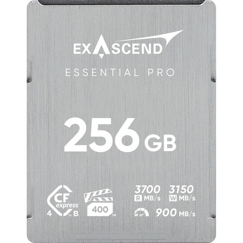 Az Exascend CFexpress 4.0 Type B Essential Pro Series 256 GB-os CFexpress 4.0 Type B 256 GB sebességre, tartósságra és kitartásra tervezték, így ideális választás a professzionális fotósok, filmesek és tartalomkészítők számára. A PCIe 4.0 / NVMe 1.4 interfészt használó kártya kivételes teljesítményt nyújt, 3700 MB/s maximális olvasási és 3150 MB/s írási sebességgel. A legalább 400 MB/s-os tartós írási sebességgel (VPG-400) stabil és megbízható rögzítést biztosít a nagy felbontású 8K videók és sorozatfelvételek készítéséhez.