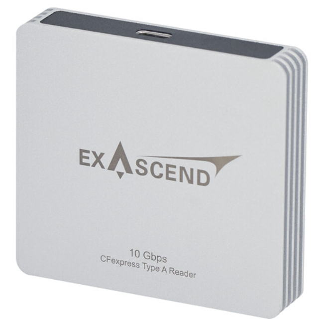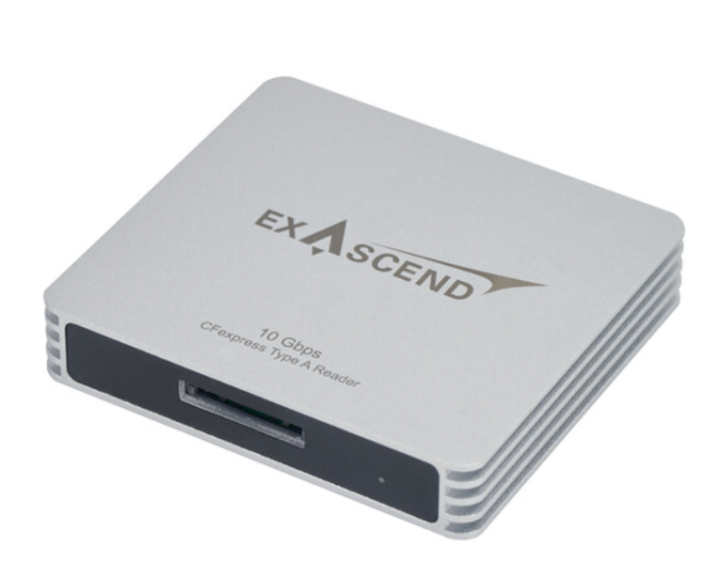 Az Exascend EXCRCFA1 CFexpress Type A kártyaolvasó 10 Gbps USB 3.2 Gen 2 átviteli sebességet biztosít 8K RAW és nagy felbontású fényképekhez. Alumínium kivitelű, buszról táplált, USB-C–USB-A kábellel és USB-A–USB-C adapterrel együtt – tökéletes professzionális mobil munkavégzéshez.