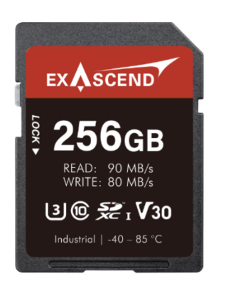 Az Exascend EX256GSDV30-IDE egy 256 GB-os ipari SDXC kártya (SD300 sorozat), amelynek olvasási sebessége akár 90 MB/s, írási sebessége pedig 80 MB/s. V30/U3/C10/A2 besorolású, -40 °C és +85 °C közötti hőmérsékleten működik, 2 000 000 óra MTBF-vel, 2,7–3,6 V bemeneti feszültséggel és SMART felügyelettel – ideális robusztus 4K megfigyeléshez, beágyazott rendszerekhez és ipari automatizáláshoz.