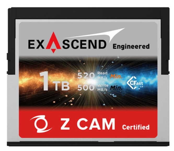 Az Exascend EXSZ3X001TB 1 TB Z CAM CFast 2.0 kártya vállalati szintű, legalább 520 MB/s olvasási és 500 MB/s írási sebességet biztosít a zavartalan filmkészítéshez. VPG-130 tanúsítvánnyal rendelkezik, adaptív hőszabályozással (ATC), strapabíró ipari kivitelben (-5 °C~70 °C) és gyári adat-helyreállítással – Z CAM platformokra optimalizálva.