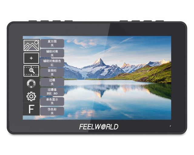 FEELWORLD F5 Pro V4 6 hüvelykes érintőképernyős DSLR fényképezőgép terepmonitor, 500nit. Monitor számos hasznos funkciót tartalmaz, mint például hisztogram, hamis színek, fókusz asszisztens, beépített hang, pixelenkénti pixel, képkocka útmutatók, kilenc rács stb.