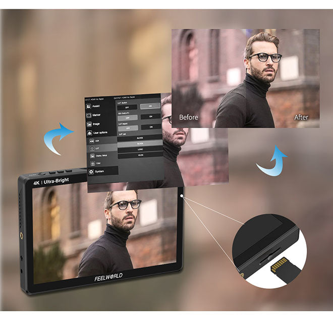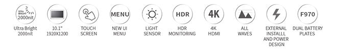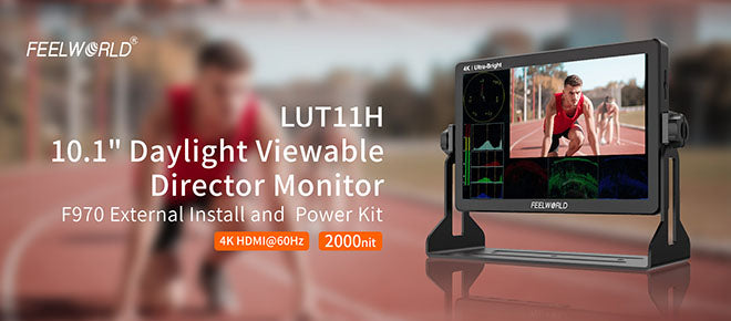 A FEELWORLD LUT11H egy 10,1 hüvelykes, teljes érintőképernyős, ultra fényerejű, 2000nit professzionális kameramonitor. Támogatja az akár 4K@60Hz-es HDMI jel be- és kimenetet. Új menüelrendezéssel egy sor felügyeleti és keretezési eszközt biztosít, a különböző numerikus paraméterek ránézésre egyértelműek, megkönnyítve a működést. Van egy F970 külső telepítő és tápegység a LUT11H hátoldalán, amely telepíthet például vezeték nélküli átvitelt, LED-es fényt stb. Ez egyesíti a monitort a vezeték nélküli átvitellel, hogy megszabaduljon a felesleges kábelektől, ami tökéletes a rendezői megfigyeléshez, az 1. AC fókuszba húzásához a filmes személyzetben. A kettős akkumulátorlemezek kialakítása egyszerre két F970 akkumulátort telepíthet a hosszú távú áramellátás érdekében még a szabadban is. Ideális a stáb terepi forgatásához, megfigyeléshez és utómunkálatokhoz.
