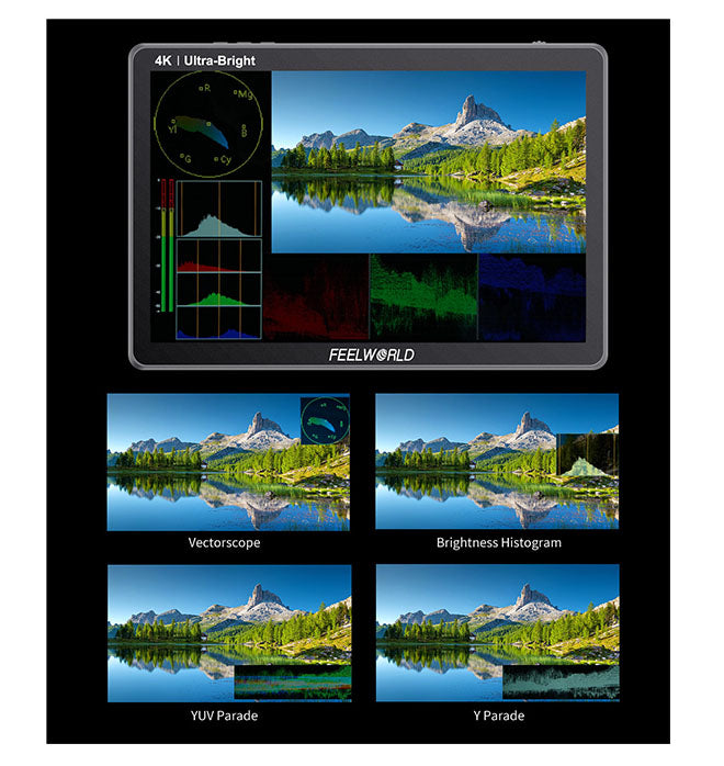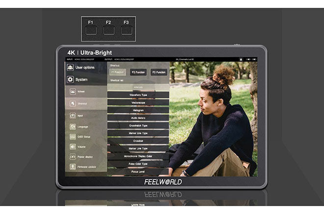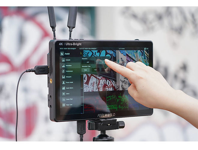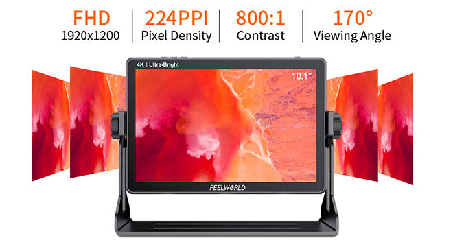 A FEELWORLD LUT11H egy 10,1 hüvelykes, teljes érintőképernyős, ultra fényerejű 2000nit professzionális kameramonitor. Támogatja az akár 4K@60Hz-es HDMI jel be- és kimenetet. Egy sor felügyeleti és keretezési eszközt biztosít új menüelrendezéssel, a különböző numerikus paraméterek ránézésre egyértelműek, megkönnyítve a működést. Van egy F970 külső telepítő és tápegység a LUT11H hátoldalán, amely telepíthet például vezeték nélküli átvitelt, LED-es fényt stb. Ez egyesíti a monitort a vezeték nélküli átvitellel, hogy megszabaduljon a felesleges kábelektől, ami tökéletes a rendezői megfigyeléshez, az 1. AC fókuszba húzásához a filmes személyzetben. A kettős akkumulátorlemezek kialakítása egyszerre két F970 akkumulátort telepíthet a hosszú távú áramellátás érdekében még a szabadban is. Ideális a stáb terepi forgatásához, megfigyeléshez és utómunkálatokhoz.