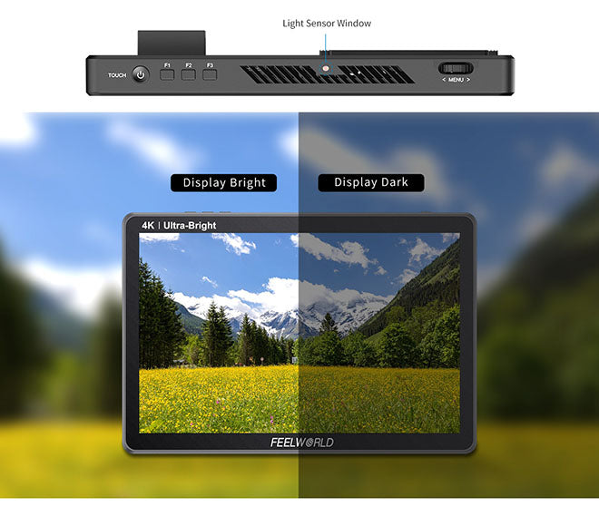 Beépített környezeti fényérzékelő, a félhomályos stúdiótól a napsütéses helyszínig, az éjféli holdfénytől a déli napsütésig képes automatikusan beállítani a monitor fényerejét a forgatási környezethez.