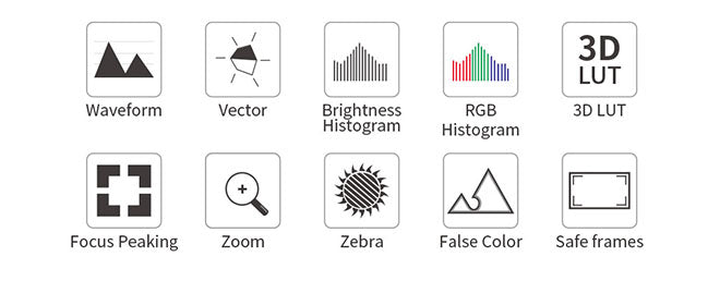 * A Waveform, Vectorscope, RGB Histogram, Focus Assist, Monochrome stb. funkciókkal, segíthet a pontos expozíció és a fókusz minden felvételen.