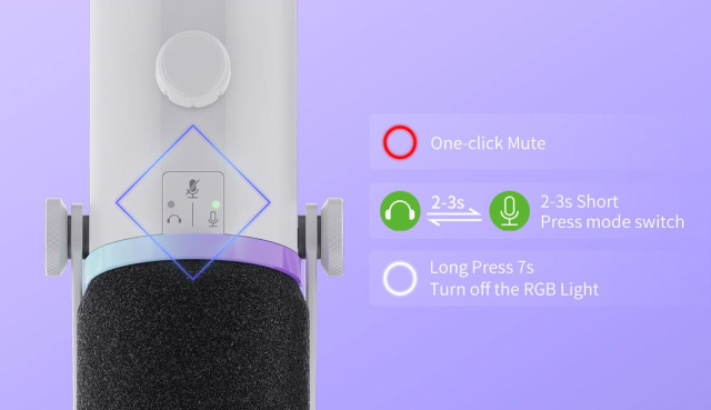 USB-C plug-and-play csatlakozással és professzionális XLR analóg kimenettel a PM1 rugalmasságot kínál bármilyen felállításhoz – az egyszerű asztali streamingtől a teljes stúdiófelvételekig. A 3,5 mm-es fejhallgató-csatlakozó valós idejű hangfigyelést tesz lehetővé, így azonnal finomhangolhatja a hangját. Az integrált RGB színátmenetes világítás személyre szabott hangulatot kölcsönöz a felállításnak, és magával ragadó streaming-élményt teremt.