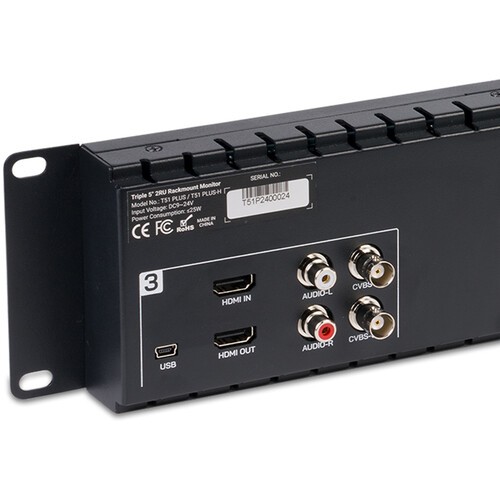 A Feelworld T51 PLUS-H egy hármas 5,5 hüvelykes Full HD rackmount monitor, amelyet professzionális műsorszóráshoz és videóprodukcióhoz terveztek, HDMI és kompozit BNC I/O, RCA audio, fejhallgató kimenetek, 3 színű jelzőfények és fejlett videó asszisztens eszközökkel, beleértve hullámforma, vektorszkóp, hisztogram, fókusz asszisztens és 3D-LUT támogatást.