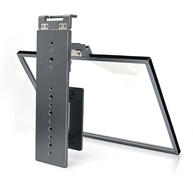 [Támogatás akár 16 hüvelykes kijelzőig] A bilinccsel a teleprompter akár 16 hüvelykes táblagépet, monitort és kijelzőket is képes fogadni.