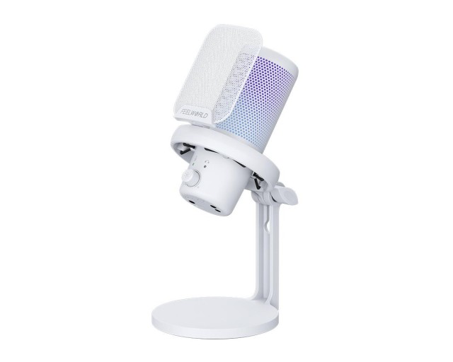 A Feelworld VM1-XS-W egy plug-and-play USB kondenzátor mikrofon, tiszta fehér kivitelben, amely tökéletesen alkalmas streaminghez, játékhoz és podcastokhoz. Kardioid iránykarakterisztikával rendelkezik a tiszta hangzás érdekében, egy gombos némítás/zajszűrés funkcióval, testreszabható többmódos RGB világítással és asztali állvánnyal.