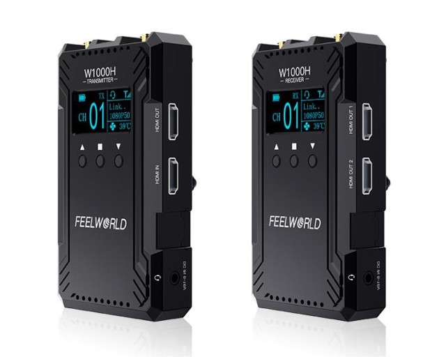 A Feelworld W1000H egy videó átviteli rendszer kettős HDMI porttal, 1000 láb átviteli távolsággal, teljes duplex intercommal és akár 1080P60Hz felbontás támogatásával, amely lehetővé teszi a zökkenőmentes élő közvetítést és megfigyelést.