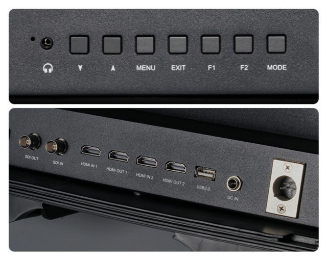 A monitor 12V DC tápcsatlakozót, XLR csatlakozót (4A hálózati adaptert használhat) és 2 V-csatlakozós akkumulátorlemezt kínál a lehetőségekhez. Erős energiát biztosít a kültéri filmezéshez.